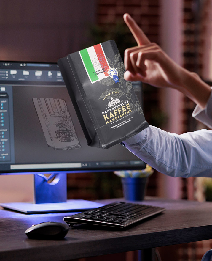 Bunter, umweltfreundlicher Digitaldruck – Flachbeutel für Kaffee